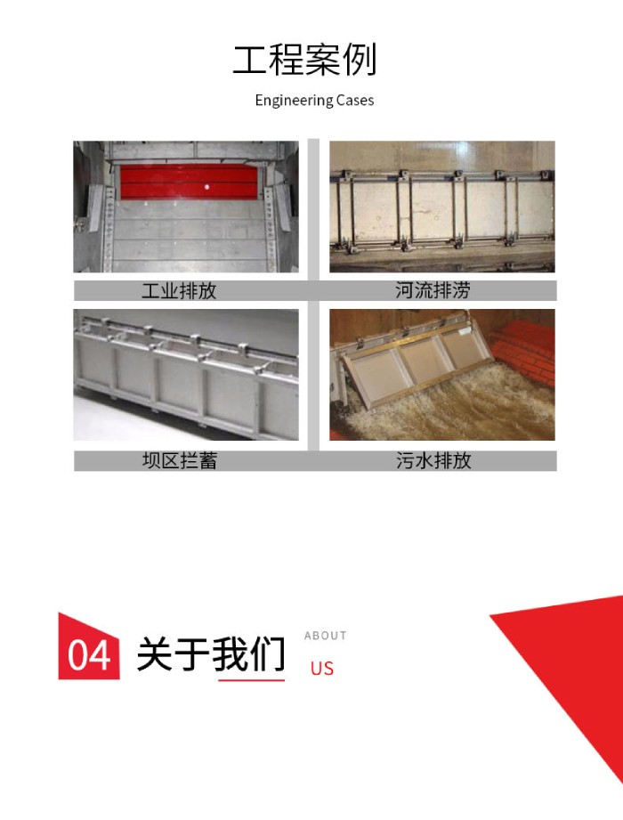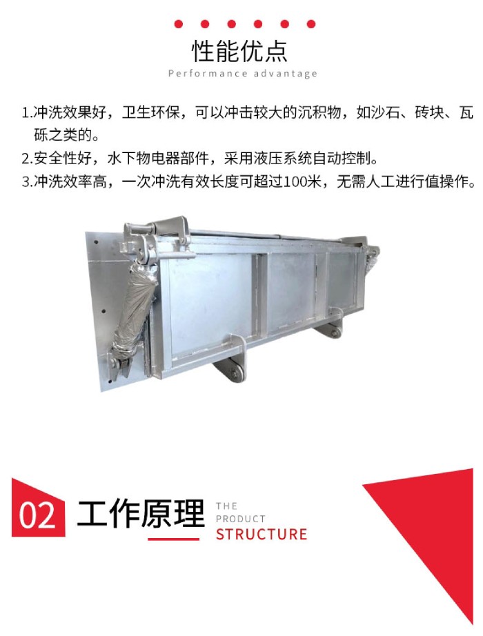 水力沖洗門是一種非常實(shí)用的水利工程設(shè)施,它可有效清除水閘門上的雜志和污垢,防止門被堵塞,從而保證水流的暢通。其次,水力沖洗門可以延長水閘門的使用壽命,減少維修和更換次數(shù),降低維護(hù)成本在城市排水系統(tǒng)中,可以利用水利沖洗門清洗排水管道,防止排水管道被堵塞,從而避免城市內(nèi)澇的發(fā)生。在工業(yè)生產(chǎn)中,可以利用水力沖洗門清洗生產(chǎn)設(shè)備,保證生產(chǎn)設(shè)備的正常運(yùn)行,不僅非常環(huán)保,而且無需專門的人力值守,可以有效降低企業(yè)的生產(chǎn)運(yùn)營成本,提高經(jīng)濟(jì)效益。