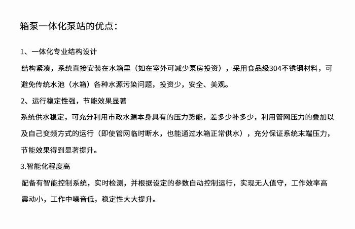它是由德諾爾在原有的變頻恒壓供水設備與無負壓供水設備基礎上升級開發(fā)而來的第七代品,箱式一體化泵站由不銹鋼水箱、用水泵、智能變頻控制柜、無負壓裝置、增壓裝置、引水裝置和穩(wěn)壓罐等組成。